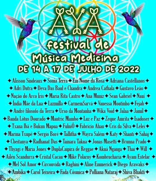 Confira a grade completa do super aguardado Festival AYA de Música Medicina, na Chapada dos Veadeiros-Goiás. O Festival AYA de Música Medicina será o grande