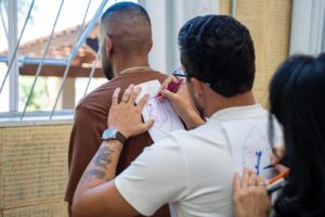 A programação foi estruturada a partir da metodologia “Sementes de Superação”, que combina escuta ativa, expressão simbólica e partilha coletiva. Um dos momentos centrais foi a dinâmica “Árvore da Cura”, na qual os participantes foram convidados a representar, por meio de desenhos e palavras, suas trajetórias pessoais incluindo raízes (valores e afetos), desafios enfrentados e formas de superação mediadas pela arte.