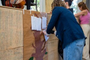 Na prática, a árvore funcionou como um “mapa coletivo de subjetividades”: cada folha representa uma experiência individual, enquanto o tronco simboliza a construção coletiva. Essa dinâmica reforça a ideia da arte como um dispositivo de mediação entre o indivíduo e o coletivo.