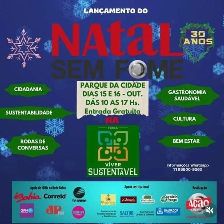Lançamento do Natal sem Fome será na Feira Viver Sustentável, no Parque da Cidade, no Dia Mundial da Alimentação (16/10) No Parque da Cidade, no
