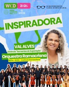 A programação também traz uma vivência especial com Val Alves @ val_alves75 e @pergaminhos_poeticos e a @orquestraramacrisna, conectando arte, sensibilidade e transformação social.